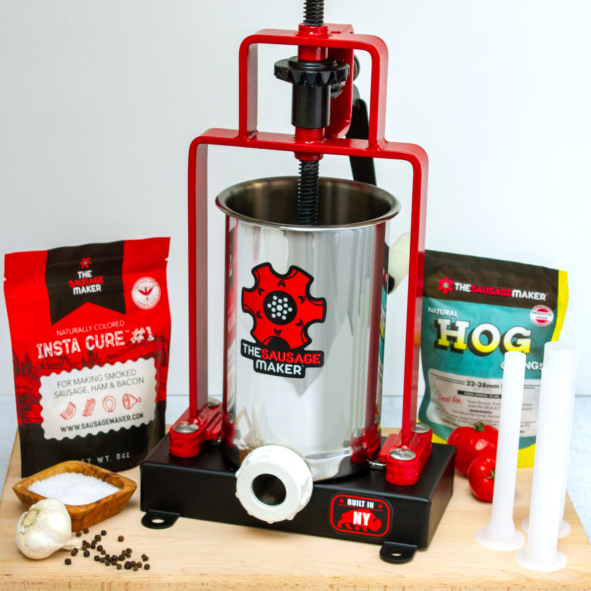 A throwback to our roots, but tougher, more substantial materials, and a popping new look we hope you like! Introducing the BUILT Series 5 lb. Sausage Stuffer by The Sausage Maker: a newly retooled classic, made right here in Buffalo, NY using our original in-house designs, custom tooling and our own equipment.