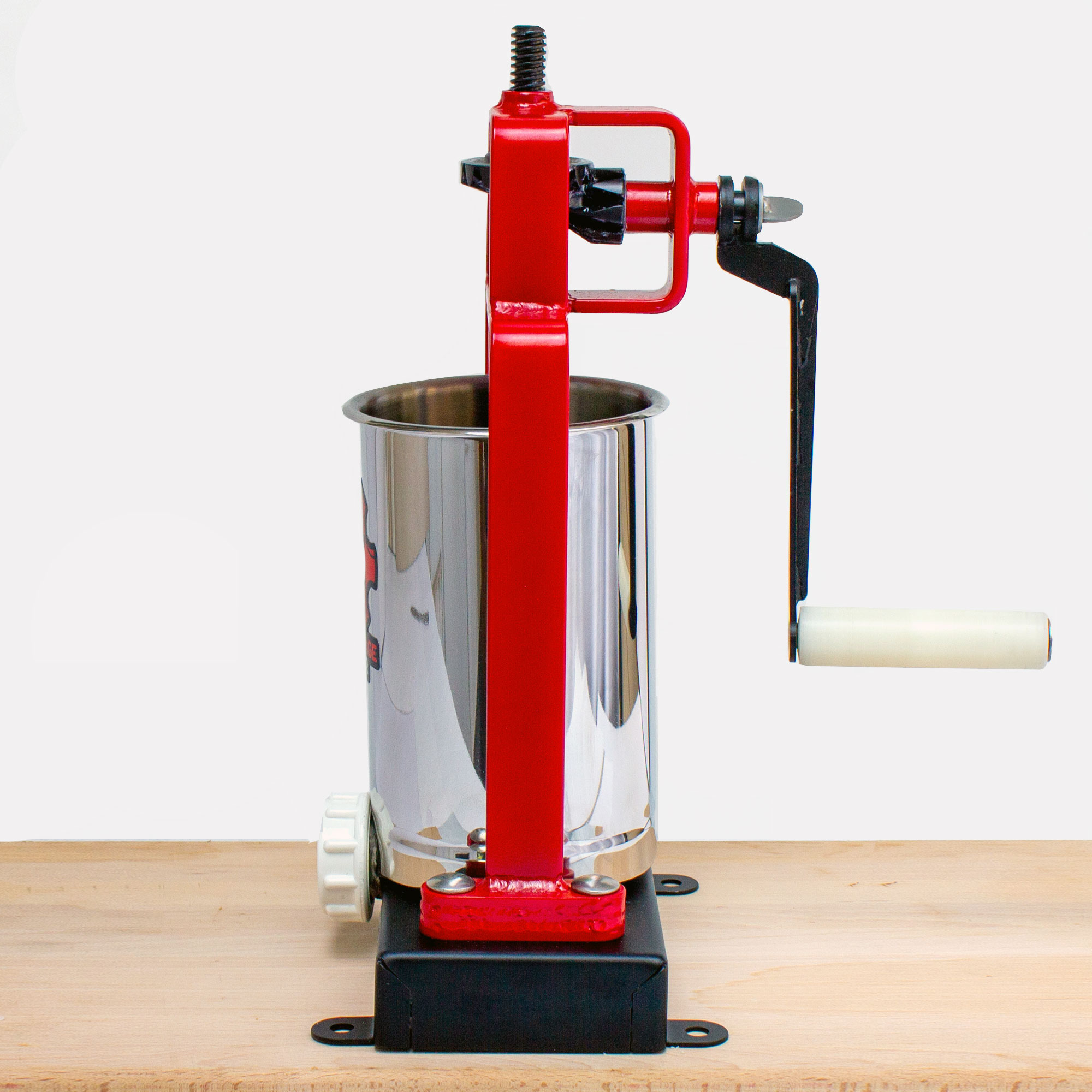 This stuffer features a bold red-and-black powder-coated finish over heavy-gauge steel bar stock for unmatched strength and a confident retro look. Designed for safer handling, easier mounting, and better control, this is a serious tool for serious sausage makers, in a smaller 5 lb Capacity package. We’re confident you, or whoever uses our new Sausage Stuffer, will immediately notice, not just the color-popping look, but the tight-tolerances we use for the gears, handle, and every bend and weld of the product. We put a lot of effort and development into this new production and it was done with care, quality and product life in mind.