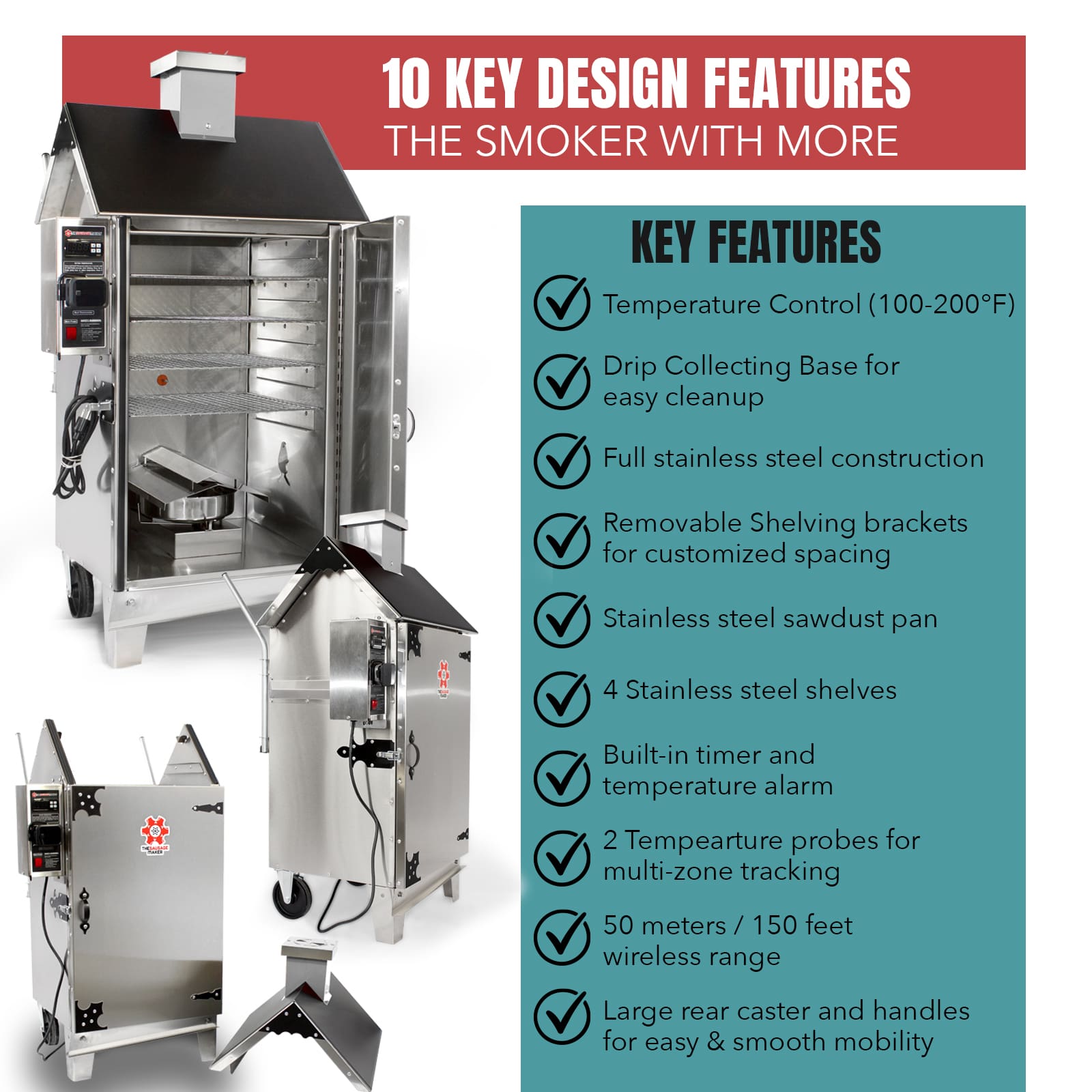 Built in Buffalo, NY, our American-Made Electric Smokers (with foreign and domestic parts) are built with premium stainless steel for superior durability and long-lasting performance. While manufactured in the U.S., we use high-quality parts such as a Brazilian temperature controller to ensure the best smoking experience. Whether you’re a backyard BBQ enthusiast or a serious meat smoker, our stainless steel electric smoker is designed for efficiency, reliability and product longevity.