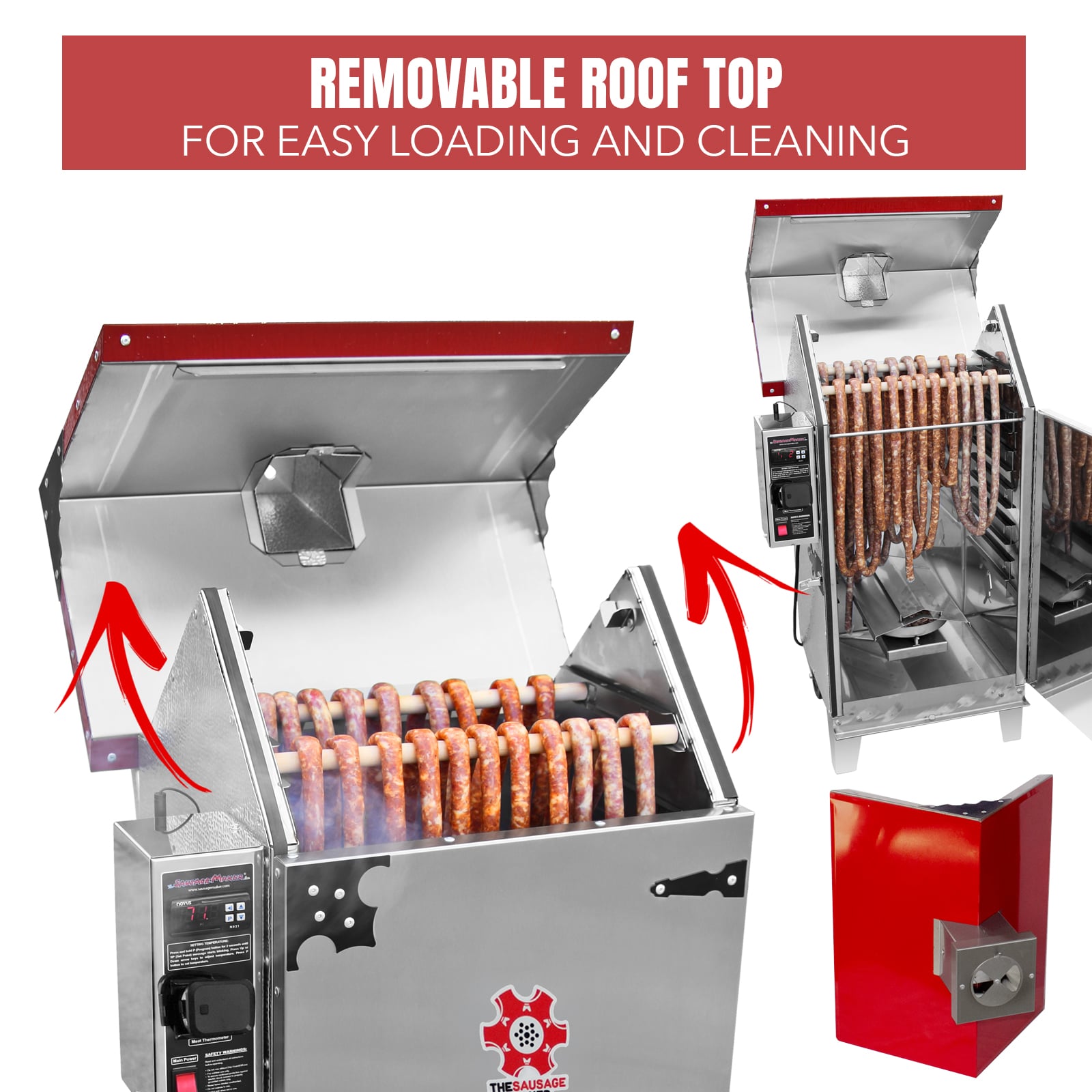 Unlike many traditional electric portable smokers, our large electric smoker features a fully removable top. This makes loading and unloading larger cuts of meat—like whole turkeys, hams, or long sausages—much easier. It also simplifies cleaning by providing better access to the interior.