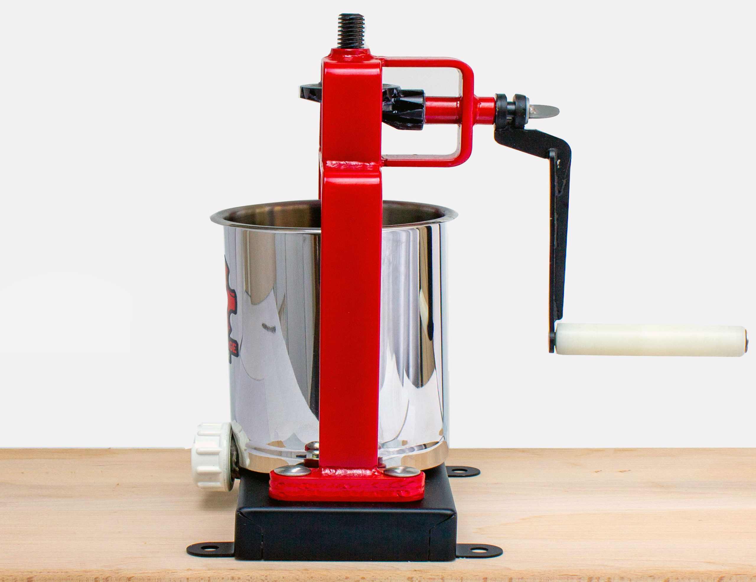 This stuffer features a bold red-and-black powder-coated finish over heavy-gauge steel bar stock for unmatched strength and a confident retro look. Designed for safer handling, easier mounting, and better control, this is a serious tool for serious sausage makers, in a larger 15 lb Capacity package. We’re confident you, or whoever uses our new Sausage Stuffer, will immediately notice, not just the color-popping look, but the tight-tolerances we use for the gears, handle, and every bend and weld of the product. We put a lot of effort and development into this new production and it was done with care, quality and product life in mind.