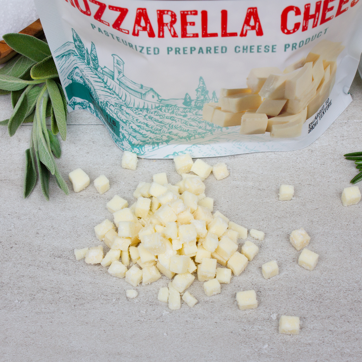 The 1/4″ dice is a perfect size for all types of sausages from big bologna to snack sticks and burger patties. Our high temp mozzarella cheese is ideal for summer sausage, cheese franks or brats.
