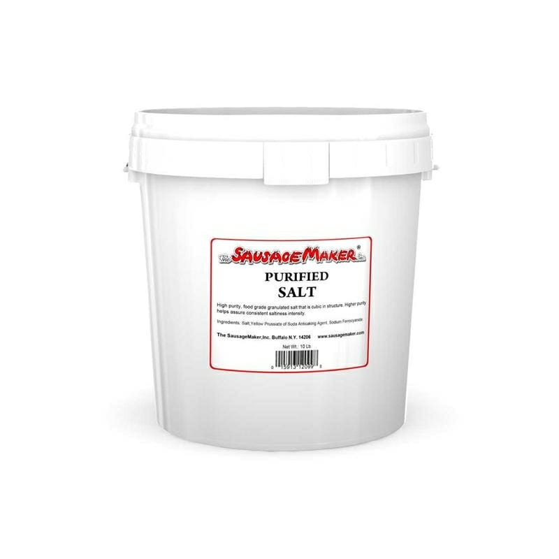 Purified Salt is a food grade, granular, white crystalline sodium chloride. Purified Salt is for making quality sausages, dry cured and semi-dry cured meats. Salt is one of the most important products in the making of good sausage as well as in curing meat. It is used by commercial kitchens as a safeguard to be sure they are using a good grade of salt.
