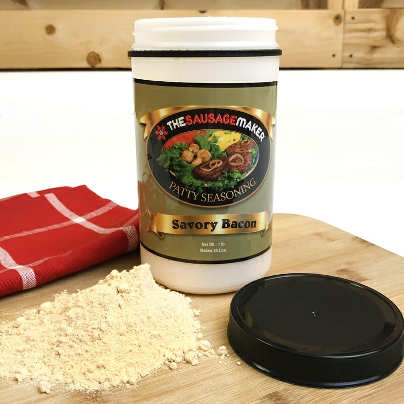 Savory Bacon Burger Patty Mix is ideal for mixing into any ground meat to give it a bacon-flavor. Ideal for ground beef, ground turkey, meat loaf and meatballs.